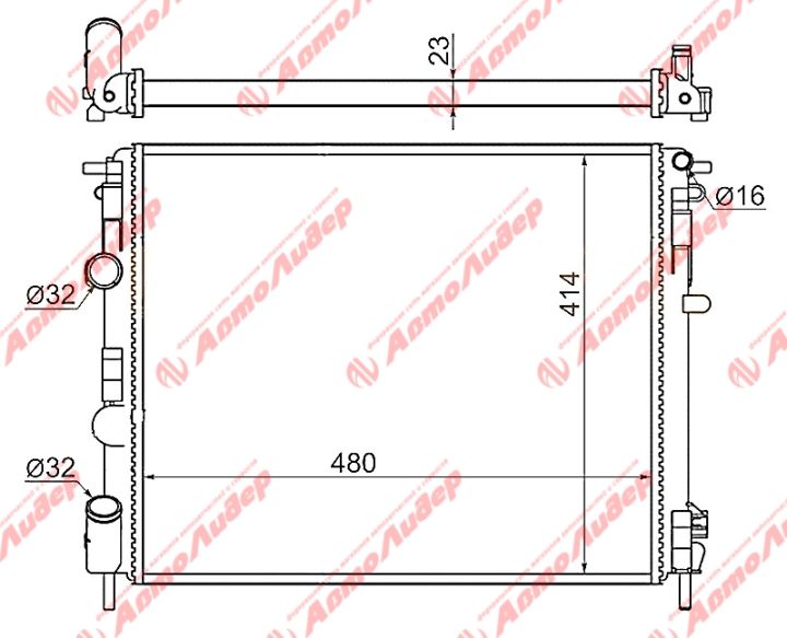 Радиатор охлаждения /AUTOLEADER для Renault Logan 2004-2008 Kangoo 1998- Clio; 1.4 1.6 1.2 1.0 1.9D /без крышки; RN-LOG2-1223; RN0002D7F 7700428658 7711134322